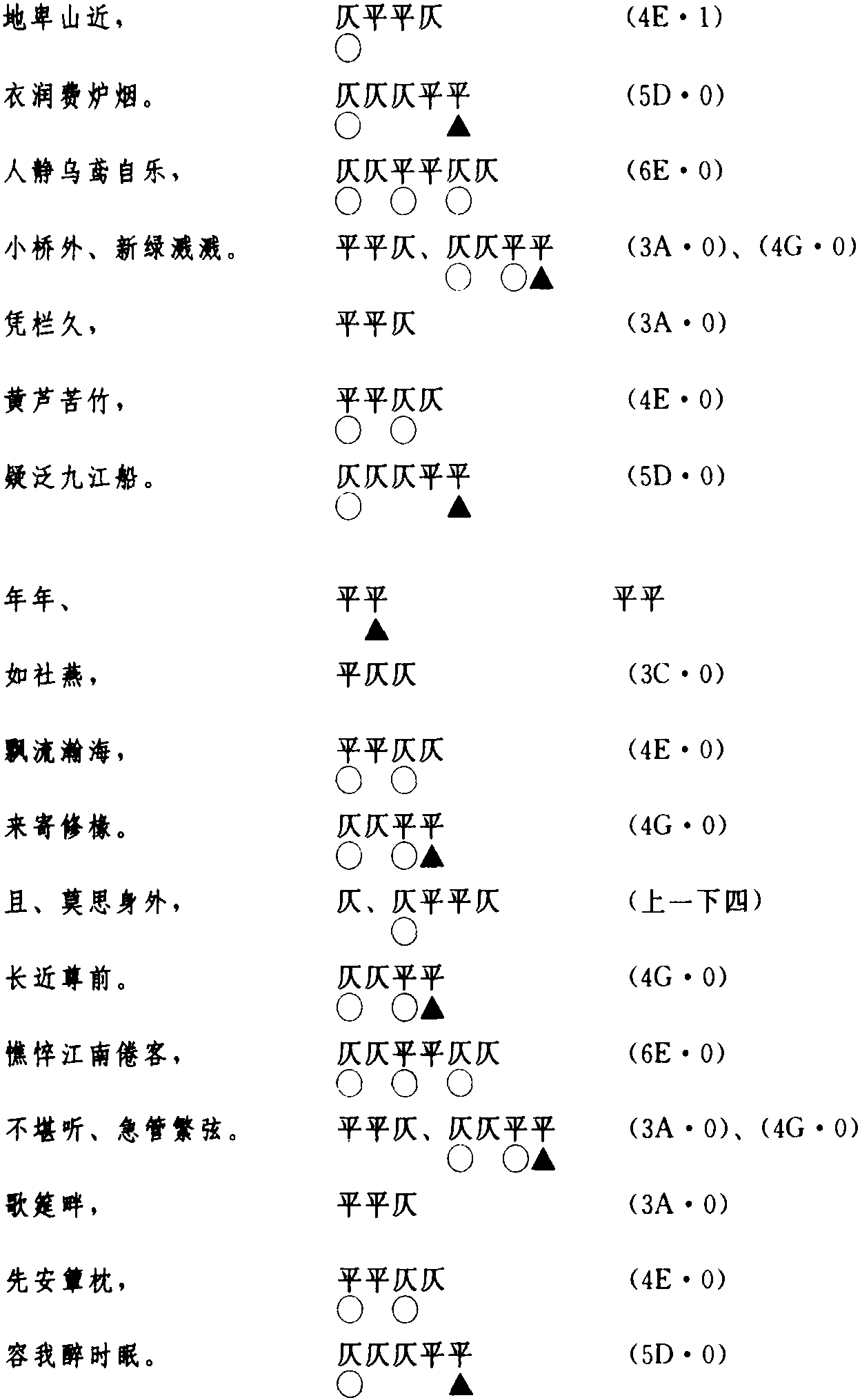 这首词,共押九个平声字韵,详况如下: 圆 读音·üan (ˊ)。王权切,平,仙韵。为üan韵目,属an—ian—uan—üan韵部。 烟 读音·ian (-)。乌前切,平,先韵。为ian韵目,属an—ian—uan—üan韵部。 溅 读音j·ian (-)。则前切,平,先韵。为ian韵目,属an—ian—uan—üan韵部。 船 读音ch·uan (ˊ)。食川切,平,仙韵。为uan韵目,属an—ian—uan—üan韵部。 年 读音n·ian (ˊ)。奴颠切,平,先韵。为ian韵目,属an—ian—uan—üan韵部。 椽 读音ch·uan(ˊ)。直挛切,平,仙韵。为uan韵目,属an—ian—uan—üan韵部。 前 读音q·ian (ˊ)。才先切,平,先韵。为ian韵目,属an—ian—uan—üan韵部。 弦 读音x·ian (ˊ)。胡田切,平,先韵。为ian韵目,属an—ian—uan—üan韵部。 眠 读音m·ian (ˊ)。莫贤切,平,先韵。为ian韵目,属an—ian—uan—üan韵部。 在今韵方面,以上九个韵字所押的韵是an—ian—uan—üan韵部(第210韵部)。 在古韵方面,押先韵(下平01)、仙韵(下平02)。此二韵相邻且通押。 ☚ (37)李清照《凤凰台上忆吹箫·香冷金猊》 (39)柳永《八声甘州·对潇潇暮雨洒江天》 ☛ |