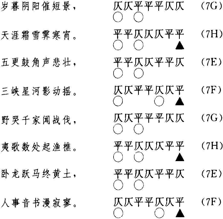 (3)以7G为首句的七律的模式诗律