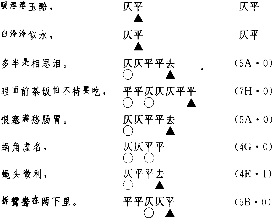 这首曲,共有十个字韵,详况如下: 醅 读音p·ei (-)。芳杯切,平,灰韵。为ei韵目,属i—ei—ui韵部。 水 读音sh·ui (ˇ)。式轨切,上,旨韵。为ui韵目,属i—ei—ui韵部。 泪 读音l·ei (ˋ)。力遂切,去,至韵。为ei韵目,属i—ei—ui韵部。 吃 读音ch·i (-)。苦击切,入,锡韵。为i韵目,属i—ei—ui韵部。 胃 读音·ui (ˋ)。于贵切,去,未韵。为ui韵目,属i—ei—ui韵部。 利 读音l·i (ˋ)。力至切,去,至韵。为i韵目,属i—ei—ui韵部。 里 读音l·i (ˇ)。良士切,上,止韵。为i韵目,属i—ei—ui韵部。 壁 读音b·i (ˋ)。北激切,入,锡韵。为i韵目,属i—ei—ui韵部。 壁 读音b·i (ˋ)。北激切,入,锡韵。为i韵目,属i—ei—ui韵部。 气 读音q·i (ˋ)。去既切,去,未韵。为i韵目,属i—ei—ui韵部。 在今韵方面,这十个韵字所押的韵是i—ei—ui韵部(第920韵部)。 在古韵方面,押灰韵(上平15)、旨韵(上声05)、止韵(上声06)、至韵(去声06)、未韵(去声08)、锡韵(入声23)。 ☚ (8)王实甫《[中吕宫]快活三·将来酒共食》 (10)王实甫《[中吕宫]四边静·杯盘狼藉》 ☛ |