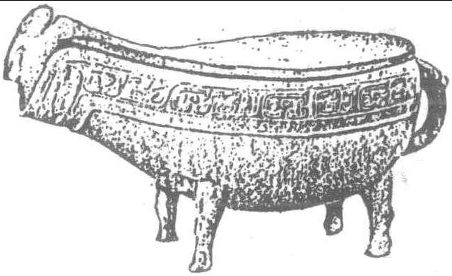 古代名物 > 日用類 > 炊食部 > 水器 > 𠑇匜 𠑇匜 yìngyí 西周中期青銅盥洗用器。通高二○·五厘米,腹寬一七·五厘米。寬流直口,虎頭平蓋,屈舌獸首鋬,有羊蹄形四足,口沿下飾竊曲紋與一道弦紋。造型奇特,自銘為盉。(按:匜當由盉演變而來,故有此銘。)腹底與蓋内有銘文一百五十七字,大意為一法律判决過程記錄,頗有研究價值。見《陝西出土商周青銅器》。 |