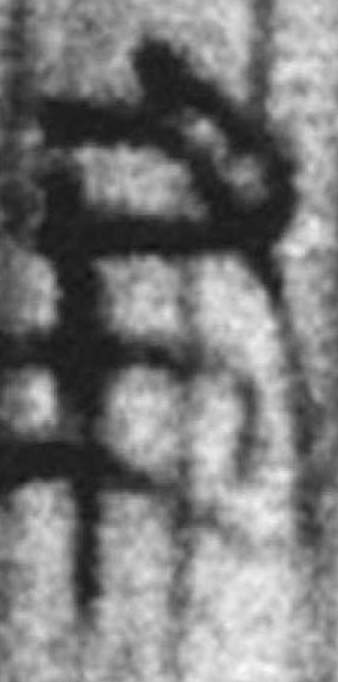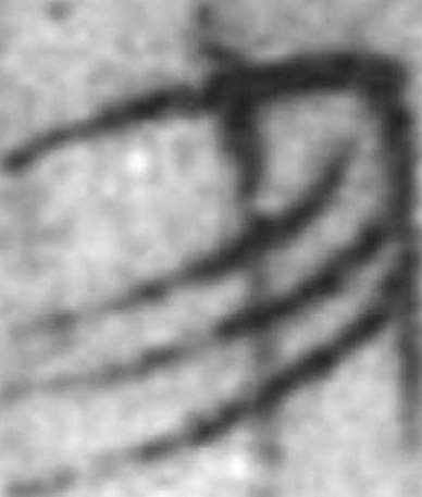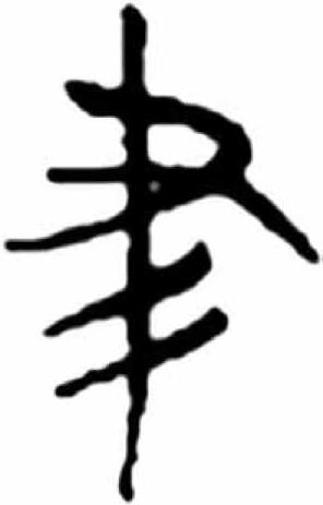 [甲骨][金文][小篆]《說文》: ,聿飾也。 从聿、从彡。 俗語以書好為𦘔。 讀若津也。(三篇下)手持的筆尖端處有很多墨汁的津液狀。