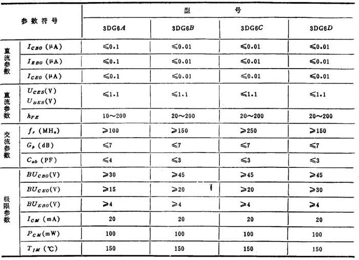 半导体三极管简称晶体管或三极管, 1.4.1 三极管的结构 三极管的结构,目前最常见的有平面型和合金型两类。硅管主要是平面型,锗管都是合金型。三极管分为NPN型和PNP型两类,当前国产硅晶体管多数为NPN型(3D系列),锗晶体管多为PNP型(3A系列),三极管的结构和符号见表8.3-5。 表8.3-5 三极管的结构和符号 a)载流子运动 b)电流分配NPN型晶体管,发射区中的多数载流子(电子)在正向电压作用下,不断通过发射结扩散到基区,形成发射极电流IE,其方向与电子运动方向相反。由于基区很薄,到达基区的电子绝大多数很容易穿过基区而到达集电结,被集电区收集,构成集电极电流Ic,只有很少部分电子与基区的空穴复合形成基极电流IB.当IB增大或减小时,Ic也按一定比例增大或减小.可见,IB的微小变化,即可引起Ic有较大的变化,这就是三极管的电流放大作用。实质上,三极管的电流放大作用就是三极管的电流控制作用或电流分配作用。 PNP型三极管的电流放大原理与NPN型三极管相同,只是电压的极性和电流方向与NPN型三极管相反。 三极管有截止、放大、饱和三种工作状态。当三极管发射结和集电结的偏置电压的极性不同时,三极管的工作状态将发生变化。其中放大状态起放大作用,截止和饱和状态起开关作用。三极管三种工作状态的特点见表8.3-6。 表8.3-6 三极管三种工作状态的特点 a)输入特性曲线 b)输出特性曲线 半导体三极管主要参数的名称、符号和意义如表8.3-7。几种常用半导体三极管的型号和参数见表8。3-8和8.3-9。 表8.3-7 三极管主要参数的名称、符号和意义  注:本章采用下述符号规则:大写字母大写下标代表静态量,小写字母小写下标代表微变量,大写字母小写下标代表交流微变量的有效值,小写字母大写下标代表交直流总量。 表8.3-9 3AX31型PNP锗合金低频小功率三极管  |