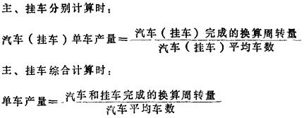 | 释义 | 单车产量 报告期内平均每辆车所完成的换算周转量。不仅按主、挂车分别进行计算,还应对主、挂车进行综合计算。由于报告期的不同,单车产量指标又分单车年产量、单车季产量、单车月产量与单车日产量四种。其计算公式为: