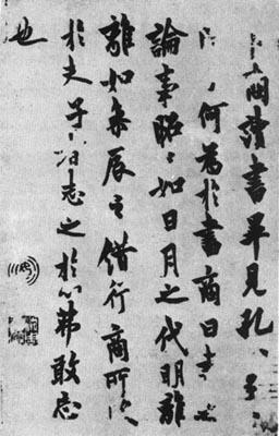 此帖与欧书《张翰帖》相同,是欧体行书代表作之一。结字与其《九成宫醴泉铭》等楷书作品很类似。字形狭长,有明显的左低右高倾斜之势,但由于线条力度很强,仍显稳重紥实,是典型的欧体行楷书。帖中每一字结体似楷书,笔画间极少牵带,字虽长,然而笔画多呈饱满丰腴之状,粗细笔画悬殊很大,形成鲜明对比,结字大部分是上紧下松,甚至有的字用墨很浓,形成密不容针的效果,如“离”、“爲”、“弗”等字。有的字结构疏朗处“疏可走马”,如“代”字、“所”字等。在笔画中落笔、收笔比较直率,不似楷书藏头护尾。全篇字紧行稀,行距很大,十分谐调。如果字紧而行密,势必密不透风,令人有迫塞之感。 |