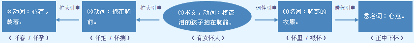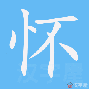 | 释义 | ![]() 胸前;心怀。 a.构成方位词组充当相应的成分。 孩子睡在妈妈的~里|他从~里掏出一封信来,交给了指导员。 b.作宾语。 那伙人都敞着~,喝得醉醺醺的|大娘来不及扣好衣服,掩着~出来为儿子开门。 心里存有。常带动态助词“着”。作带宾谓语,或构成连动词组作谓语。 胸~大志|不~好意|他们~着崇敬的心情向纪念碑献了花圈|他~着极大的兴趣观看了孩子们的演出|战士们~着无比的仇恨向敌人阵地冲去。 【误】 他的讲话,怀着真情实感。(“真情实感”不能同“怀着”搭配,应改为“怀着深厚的感情”) 【词语】 怀表 怀春 怀古 怀鬼胎 怀恨 怀旧 怀恋 怀柔 怀胎 怀想 怀孕 字源解说 褱,金文 附 文言版《説文解字》:懷,念思也。从心,褱聲。 附 白话版《说文解字》:怀,内心挂念。字形采用“心”作边旁,采用“褱”作声旁。 引申线索 ![]() 字源解说 褱,金文 附 文言版《説文解字》:褱,俠也。从衣,眔聲。一曰橐。 附 白话版《说文解字》:褱,怀挟。字形采用“衣”作边旁,采用“ 【字族索引】 不 【同音字】 huái |