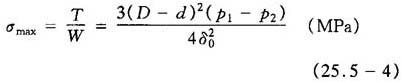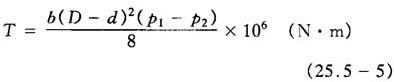 D——缸体内径(m); d——叶片安装轴外径(m); p1——进口压力(MPa); p2——出口压力(MPa); δ0——叶片根部厚度(m)。 式(25.5-5)和式(25.5-6)中的b为叶片轴向宽度(m)。 应该使