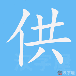 ❶供给;供应。能带动态助词“了”“过”。常作带宾、带补谓语。可带双宾语。也可构成兼语词组作谓语。 他们的经济负担很重,既要~两位老人,又要~小孩|你出力,我~材料|你安心去上学吧,我~你一切费用|你们要这么多,我们可~不起|这部碎石机的胃口真大,只要它一开动,我们三个人~料都~不过来|他~我到能独立生活|他们好不容易把孩子~大了|你一个人~得上这么多人吗?|在大学学习期间,姐姐~过我两年|姐姐~我上大学。 ❷提供某种方便条件,以备利用。常构成兼语词组作句子成分。 a.作谓语。 这些意见~你参考。 b.作定语,要带“的”。 这儿是~旅客就餐的简易餐厅。 【反】 ❶求 【词语】 供不应求 供电系统 供销系统 【注意】 又读gòng,如:供奉、供品、供词。