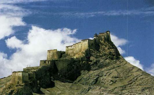 日喀则宗山古堡 地处日喀则城区偏北的日光山上,是一座西藏式的封建庄园。 古堡始建于公元1360年,1303年完工,依山而建,主楼共4层,附设其他建筑形成建筑群,显得壮观雄伟。 古堡有“小布达拉宫”之称。据传说,清朝康熙年间,拉萨修建布达拉宫时,曾参照日喀则这座城堡。