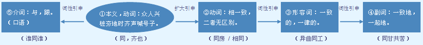 | 释义 | ![]() (1—5*仝) 相同;一样: 引为~道|大~小异|异口~声|~工~酬。 异 yì ~曲同工|日新月~|求同存~|远在~乡为~客。 殊 shū 悬~|~途同归|与原意无~。 ★ “殊”属于书面语。 相同,一样;跟所指事物相同。 a.常作带宾谓语。 我和他~姓|他们哥俩~父异母|这个词的用法~那个词的用法|“跡”~“迹”,它们是异体字|我和你的身份不~。 b.作定语。 我们坐的是~一辆车|~一个民族的人有不少共同之处。 c.作宾语,或活用为名词作宾语,多用否定式。 两种设计的指导思想有不~|两件文物一模一样,我看不出有哪一点不~。 共同,一起;都。用在动词前作状语。 干部与群众~甘苦,共患难|大家~生活,~学习,彼此很了解|暑假我们~去旅游|我和小顾~是广东人。 常构成介宾词组作状语,引进有关的对象或比较的事物。 我~他告别|有事~群众商量|现在的情况~过去不同|写作~绘画一样,必须练好基本功|这件仿造的青铜器~真品一模一样|这件事~我没有关系|你的工作调动~这件事有牵连。 表示并列关系。常连接名词、代词或名词性短语,有时也连接动词或动词性短语。 北京~上海都是大城市|我~你都是大家选出来的代表|电影《红楼梦》~电视连续剧《红楼梦》各有特色|游泳、打球~跑步,都能增强人的体质|参加合唱队~参加舞蹈队都是你自己决定的。 【辨】 同和和、与、跟:见“跟”。 【近】 〈介〉和 跟 与 〈连〉和 跟 与 及 【词语】 同班 同伴 同胞 同辈 同病相怜 同步 同侪 同窗 同床异梦 同道 同等 同甘共苦 同感 同工同酬 同工异曲 同归 同行(háng) 同好(hào) 同化 同伙 同居 同类 同僚 同流合污 同路 同门 同盟 同名 同谋 同年 同期 同声相应,同气相求 同事 同室操戈 同位素 同喜 同乡 同心 同行(xíng) 同性 同姓 同学 同业 同一 同义词 同音词 同志 同舟共济 同宗 字源解说 同,甲骨文 附 文言版《説文解字》:同,合會也。从 附 白话版《说文解字》:同,会合。字形采用“ 引申线索 ![]() 【字族索引】 同 【同音字】 tóng tòng |