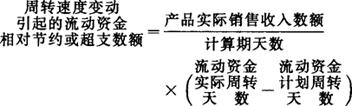 指流动资金周转速度加快(或减慢)使生产经营过程占用的流动资金减少(或增加)的数额。这是分析流动资金利用效果的指标之一,其计算公式如下: