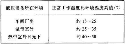 环境温度和液压油工作温度(操作温度)一般关系,见表2.5-4。 表2.5-4 环境温度和操作温度(指没有冷却控温的液压设备)一般关系表