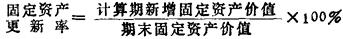 | 释义 | 固定资产更新率 企业一定时期内新增固定资产价值与全部固定资产价值的比值,用百分数表示。计算公式如下: