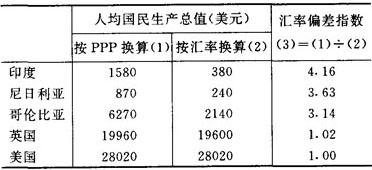 | 释义 | 国际比较项目 亦称国际比较计划(international comparison programme,ICP),比较各国的总产值(GDP或GNP)或人均总产值,首先要求各国的总产值指标定义和计算方法一致,联合国制定的国民账户体系对总产值指标做了明确的规定。 其次要求把各国按本国货币单位计算的总产值数值换算为统一的货币单位。常见的方法是按市场汇率换算为美元。 但是,一个国家的货币汇率并不能准确地表现该国货币的购买力。 因为货币汇率一般是根据一国的对外贸易商品价格和外汇市场供求状况决定的,而对外贸易商品仅占一国生产产品的一部分;同时,货币汇率往往受政府政策及其他因素的影响。准确的换算方法应该是根据各国货币的购买力换算为统一货币单位,通常称为按购买力平价(purchasing power parity,PPP)换算。 1968年联合国建立了国际比较项目(简称ICP)研究测算各国货币购买力和实际产值的方法。 项目从1969年起分阶段进行,先从少数国家开始,以后逐阶段增加国家数目,每阶段提出研究结果报告。到1996年,共进行了六个阶段。 第六阶段完成了涵盖118个国家、以1993年为参照年的各国货币购买力和实际产值的测算结果。 项目的实施,首先是编制各国的货币购买力指数。编制各国货币购买力指数,实际就是编制跨国家的价格指数,其原理与方法同编制一个国家的跨时期的价格指数类似。其主要步骤: (1)选择代表项目产品。 ICP根据联合国国民账户体系中国内总产值的支出分类,将计算购买力平价指数的产品分为3类(个人消费、政府消费和资本形成)、153项,从中选定约500个产品作为代表。 (2)在参加基准调查国家里确定同品种、同质量的商品和服务项目,调查登记这些商品和服务在基准调查国家的价格。 (3)计算各国的相应商品和服务的价格比率。 (4)把商品和服务价格比率先按项目、再按类别汇总,最后加以综合,得出参加基准调查国家的跨国价格指数,亦即购买力平价指数。 (5)根据购买力平价指数计算实际总产值(和人均总产值)指数。 关于将各国的商品和服务价格比率进行汇总的方法,经济统计学家开发出几种公式。 1CP采用的是以吉尔利(Robert Geary)和卡迈斯(S.Khamis)命名的吉尔利-卡迈斯算式。这一算式可以同时推导出世界平均价格和各国的价格比较。 ICP测算的按PPP换算的各国总产值(和人均总产值)数值同按汇率换算的数值相比较,呈现规律性的差异,即低收入国家按PPP换算的数值都高于按汇率换算的数值,有些高出好几倍。 下面是一组国家按PPP和按汇率换算的1996年人均国民生产总值的比较。据西方经济学家解释,这是由于低收入国家的物价水平较低,其汇率低估了其货币购买力。 因为测算货币购买力平价的工作量很大,ICP每隔几年(通常是5年)才举行一次,而且每次只有一部分国家参加基准调查。 因此,ICP提供的PPP序列数据既不连续又不全面,给世界经济研究带来很多不便;一些国际组织统计机构和学术团体以ICP的研究结果为基础利用回归及其他统计方法对未参加基准调查国家的PPP指数和序列数据缺项进行了推算。(参见“宾州大学世界统计表”词条) 按PPP和按汇率换算的人均国民生产总值 (1996年)