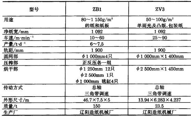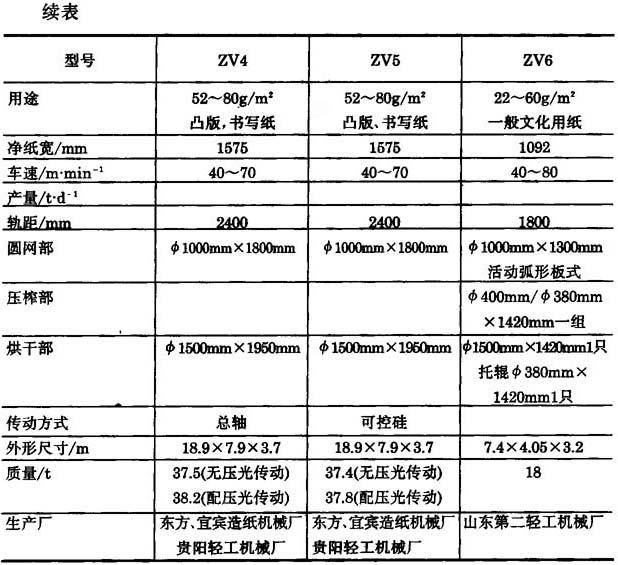 表11-1-8 圆网造纸机的技术特征