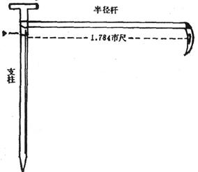 | 释义 | 圈测法 指农产量抽样调查时,在抽取的农作物地块内,用一定半径的圆形测规作为样本,对已成熟的农作物进行实割实测的方法。 测规一般用10平方市尺或20平方市尺的。根据圆面积(r2π)公式,如以半径1.784市尺为例,则(1.784)2×3.1416=10(平方市尺)。 测规用铁制成支柱和半径杆两部分,要严格保证半径长度的准确性。下图为10平方市尺的测规。 圈测法通常适用于窄行作物,如小麦、水稻等。