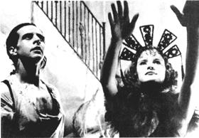 | 释义 | 圣血 【片头介绍】: 1989 彩色片 123分钟 意大利英特尔松影片公司摄制 编导:阿历让德罗·佐杜洛夫斯基 主要演员:艾塞尔·佐杜洛夫斯基(饰芬尼克斯) 布兰卡·古拉(饰冈嘉) 盖·斯托克威尔(饰奥高) 本片获1990年巴黎国际科幻片电影节大奖 【剧情简介】: 在精神病院,有个名叫芬尼克斯的病人。 他胸前刺著雄鹰展翅的文身,本人也如鸟一般,终日蹲在树上,不吃熟食,不说话。芬尼克斯之所以精神失常,是由于童年时代经历了一场噩梦似的家庭悲剧。 芬尼克斯的父亲奥高是马戏班班主,会催眠术,在马戏班里表演飞刀。母亲冈嘉有一双撩人的美丽的眼睛,她表演空中飞人。 芬尼克斯是小魔术师。他自幼性情孤僻。 父母各有各的心事,芬尼克斯惟一的朋友是一个文身女人的养女哑巴艾玛。 冈嘉迷信拜物教。 她信奉一个名叫奥莉的断臂女神。奥莉生前本是个美丽的少女,一次在反抗两兄弟对她欺凌时被斩去双臂失血而死。人们在她流血的地方挖了一个水池,贮了一池红水,上面盖起教堂,名为“圣血”教堂。当地政府认为这是邪教,下令拆除教堂。 两辆推土机把教堂夷为平地。冈嘉带领信徒反对拆教堂不果,把圣像供到自己家中。 马戏班里与奥高合作表演“飞刀美女”节目的文身女人是他的情妇。她全身刺满野兽、骷髅、蛇虫、鱼鸟的文身,那是奥高的杰作。 冈嘉看见文身女人与丈夫调情,狂怒扑过去。奥高用催眠术使她安静下来并使她得到极大满足。 小芬尼克斯看到父母疯狂作乐的情境感到震撼。 马戏班的大象鼻子流血死去,大家都像失去伙伴一样十分伤心。 他们穿上黑衣,奏著乐,隆重地为大象送葬。可是棺材吊下山沟后,衣衫褴褛的穷人却奔下山去分割象肉拿回家煮来吃。 芬尼克斯伤心得掉泪。奥高认为儿子缺乏男子气,在他胸前刺了一只展翅飞翔的雄鹰。 奥高说:“这样,你就像我一样是个真正的男子汉了。” 一晚,冈嘉正在场地表演空中飞人时从高处望见奥高和文身女人在偷情。她狂呼把她放下,趁混乱之际潜入卧室,把一瓶硝酸泼到奥高下体。 奥高疼极,抄起两把飞刀斩下冈嘉双臂,然后自刎。芬尼克斯目睹这可怕的事故,顿时神经失常,被送入精神病院。 现在,芬尼克斯已是一个青年,但心理创伤仍未痊愈。 医生为了帮助病人克服幽闭证,带一群病人去看电影。当护士忙著去幽会不在病人身边的时候,一个拉皮条的人把他们领到了红灯区,没收了他们的钱,把他们交给一个老妓女。在红灯区,芬尼克斯看见那个害苦他父母的文身女人。 芬尼克斯在冈嘉唆使下逃出了精神病院。从此,他成了冈嘉名符其实的左右手,按她的意志行事。他干的第一件事,便是到红灯区残酷地杀死那个文身女人。 现在,没有手的冈嘉有了双手。它们不但能帮她料理生活,而且使她能够重上舞台。母子二人表演一个叫“魔手”的双簧节目,冈嘉在前面朗诵,芬尼克斯涂著红指甲油的双手配合表演。芬尼克斯的手不再属于他自己,它们受冈嘉大脑支配。 一个表演色情节目的女人勾引芬尼克斯。芬尼克斯把她催眠后,让她站在飞刀板前供他练习飞刀。冈嘉说这个女人用诱惑来玷污他,令他杀死她。芬尼克斯不忍下手,冈嘉怒喝道:“我是在用我的手!”芬尼克斯一刀扔过去,插在女人胸部。那女人还在催眠状态下,完全没有痛苦的感觉。冈嘉命令芬尼克斯把她唤醒。女人骇然发觉自己胸前插著一把刀,大叫著痛苦死去。母子二人和侏儒仆人把尸体装进一个大口袋运回家,挖个坑埋在后花园。 尸体涂上白漆。 芬尼克斯看了电影《隐身人》,想学隐形。他到药房买了各种药调制服下,可是拆下裹著脸部的一圈圈纱布,结果并不像电影里那样脸消失了,他的脸依然好好地在脖子上。 他很失望。由于服下各种化学药品,他的幻觉加剧了。当产生欲念的时候,他仿佛觉得自己与一条大蟒在搏斗。 一个外地剧团到这里巡回演出。剧团有个女大力士,身体硕大无朋,芬尼克斯对她很爱慕。 他送给她一支红玫瑰,请她去他家小舞台,单独为她表演魔术。 他要把棺材里的木乃伊变成一百只鸽子,这个节目名为“死亡转化为生命”。可是,木乃伊却变成了冈嘉。在冈嘉的催眠下,芬尼克斯杀死了自己爱慕的女人。 她的尸体又被涂上白漆埋在后花园。尸体愈来愈多,芬尼克斯被梦魇缠绕,总像看见许多白衣女鬼从地下冒出来。 哑女艾玛本是文身女人的摇钱树,在她的奴役下受尽折磨。 现在文身女人已死,她回复自由身。 一天她偶然在“魔手”的招贴广告上看见冈嘉的名字,找到芬尼克斯。她用手语劝他像老鹰一样飞离这个地方。 冈嘉又令芬尼克斯杀死艾玛。芬尼克斯虽然受到催眠,但对艾玛的爱使他产生巨大力量,他终于作了最后了断,把刀刺向冈嘉。 艾玛砸了“圣女”神像,烧了祭坛,带领芬尼克斯离开这可怕的家。 警察早已包围了这幢房子。芬尼克斯在警察喝令下举起了双手——已经属于他自己的双手。。 【鉴赏】: 《圣血》是一部怪诞电影,由拍摄惊世骇俗题材著称的智利导演阿历让德罗·佐杜洛夫斯基自编自导,他的儿子艾塞尔·佐杜洛夫斯基主演。 影片曾在戛纳电影节展出并获得巴黎国际科幻片电影节大奖。巴黎国际科幻片电影节规定参赛影片必须是世界各地的科幻片、恐怖片、怪诞片。电影节专门组织这方面的电影回顾展,探讨科幻片、恐怖片、怪诞片的艺术风格、制作技术