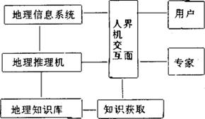 | 释义 | 地理专家系统 一种拥有大量地理专业领域知识(包括理论知识和地理专家经验)和地理数据并能在一定的推理策略控制下进行以地理知识为核心,以地理数据为对象的推理,以产生一定的地理决策方案为目的的计算机软件系统。 用该系统求得的地理决策方案和人类地理专家在相同推理条件下得出的方案具有相同的水平。 由于地理学中大量存在难以用数学方法精确描述的不确定性问题,不能或很难用常规的方法解决,而地理专家系统通过运用知识和经验进行推理,特别适合于解决或者辅助人类专家解决各类不确定性地理决策问题。 因此,地理专家系统具有很大的实用价值。一般地,地理专家系统可以分为4个功能模块,即地理知识库(Geographical Knowledge Base)、地理推理机(Geographical Inference Engine)、地理信息系统(Geographical InformationSystem)及人机交互界面,如图示。