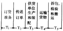 上述几部分时间中,T1与T5是企业内部作业,本单位可以控制,而其余T2、T3与T4是外部企业完成的作业,是不可控制的。备运时间是影响物资储备水平的重要因素之一。