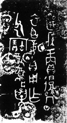 【赏析】: 如果仅从字形结构来考虑,《复尊》在西周早期的铜器铭文中并不突出,但组合成篇,却显示出了它的独到之处。 这件作品可以分爲三步欣赏。第一,它起手平平,不事任何张扬,有著小夜曲式的平稳舒畅、安谧愉快;它以通篇的三分之二来渲染这种气氛,显示出书者那异乎寻常的自信。第二,三行的“父乙宝尊彝”五字异军突起,打破了恬静閑适,给人以“一石击起千重浪”的激动振奋,给人以“渔阳鼙鼓动地来,惊破霓裳羽衣曲”的战慄惶惑,表现了书者有著把握局势、领袖群伦的大将风度和娴熟。第三,以一个“举”(旧释“析子孙”或“冀”)字徽誌结束,仿佛带著“此曲只应天上有,人间那得几回闻”的惬意,沉吟徘徊,无可自已。这些东西来自作品的形式和内涵,是它们触发了欣赏者的灵感,让人们循著作品所提供的联想去驰骋追寻,去分析判断,再根据自己的美感所得,反馈到书法作品的艺术境界之中。这种欣赏不是直接的技巧与形式的对应,而是书家以作品的“象”达情述志,欣赏者则“推扩此心”、“以意逆志”,在“言不尽意”的审美表述中以联想比喩爲手段,对作品和书家做出带有创造性的解释。我们如此欣赏《复尊》书法,就是墓于这种认识。 |
