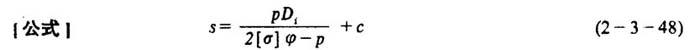 [公式]当容器直径较大,一般大于4m时,都是在安装现场制造,不须搬运。相应地其高度和液柱静压力也将增大,多数将大到或超过7×104Pa。因此,圆筒壁厚计算主要从强度角度考虑,应按液柱静压力采用内压容器圆筒壁厚度的计算公式进行计算。