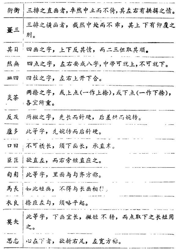 《书法三昧》载有《大结构》一篇,总论字的结构原则。清冯武曾于《书法正传》中特别指出,学者须切记此篇。其主要内容为: