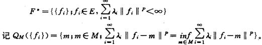 其中U(L)为L的邻域全体。 Freilich和Mclaughlin只对实空间E加以证明,复空间E的证明类似。 我们举出反例,指出定理F-M中L∈extK是错误的,应改正为L∈K.进一步,对于非凸集,我们于1987年得到 定理X-L 下列条件等价: (1)M是同时太阳集: Ft={fi;fi=m0+t(f-m0),f∈F} (2) 再讨论M对{fi}的P阶联合最佳逼近问题,设P≥1,数列{λi}满足λi≥0, 在讨论中,我们固定{λi},并令