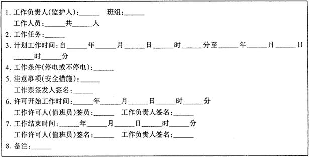 | 释义 | 安全工作制度 (一)工作票制度 工作票有两种,即第一种工作票(停电作业工作票)和第二种工作票(不停电作业工作票)。两种工作票的式样见表4-1-7和表4-1-8。 表4-1-7 变电所第一种工作票