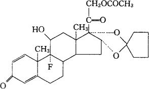 | 释义 | 安西缩松 C28H35FO7=502.58 CAS-51022-69-6 9-氟-11β,16α,17,21-四羟基孕甾-1,4-二烯-3,20-二酮与戊酮结合的16,17-乙缩醛环,21-醋酸酯。 9-Fluoro-11β,16α,17,21-tetrahydroxypregna-1,4-diene-3,20-dione cyclic 16,17-acetal with cyclopentanone,21-acetate. 皮质激素类药。 安西奈德。 Amcinonide Cyclocort. INN,BAN,DCF,BAN,USAN,USP,MI.