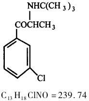 | 释义 | 安非他酮 【别名】:丁氨苯丙酮 【化学名称】(±)-1-(3-chlorophenyl)-2-[(1,1-dimethyl-ethyl)a mino]-1-propanone 【化学结构】