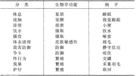 动物达到目的的行为。 1918年动物学家克雷格将此行为与寻找目的的行为分开后命名。如,雄鸽为雌鸽找到适宜产卵和孵卵育雏的巢穴时,会跳进去用脚趾踩,用喙理里面的草,然后卧伏下来咕咕叫,不再试探别的地方。科学家一般认为,在某些情况下,它是欲求性搜寻行为的终点,但对其在诱发一些行为变化的作用上尚有分歧。如,许多动物的性行为在达到射精和受精的目的后即告完成,但三棘鱼使卵受精的行为在降低雄鱼的性驱力上并不起作用。 甚至某些物种(如鼠)在一次性行为中会几次射精。一种完成行为可以是下一种行为出现的刺激或驱动力。 该行为的分类及其功能见下表(表中仅针对低于人类的动物)。 动物的完成行为的分类和功能