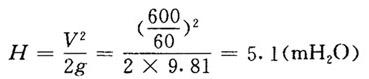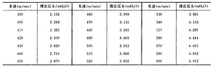 式中 H——理论压头(mH2O) V——车速(m/s) g——重力加速度,9.81m/s2 【例】 如车速为600m/min,理论压头为: