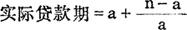 借款人实际使用中长期贷款的期限。 在到期一次偿还的方式下,借款人能在整个贷款期限内始终按照贷款契约中规定的贷款额度实际使用全部贷款资金,在这种情况下,贷款契约中规定的贷款期限,既是名义贷款期又是实际贷款期;在“分期等额偿还”和“逐年分次等额偿还”的贷款方式下,由于借款人实际使用的贷款资金,将因每半年还本一次而递减,所以,实际贷款期远较名义贷款期为短。根据长期实践,推导出计算实际贷款期的公式为:  a=宽限期:n=名义贷款期;“a”表示每半年还本一次。在谈判、签订中长期贷款协议时,偿还本金方式往往是借、贷双方争议的焦点。 |