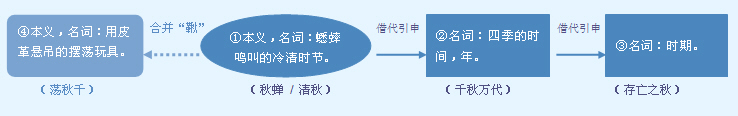 | 释义 | 秋 1 (*秌*龝)★★★ 01072名![]() (鞦) ❶秋季,是一年的第三季,一般指农历7月至9月。 a.作主语。 北国的~,却特别地来得清,来得静,来得悲凉|江南,~当然也是有的……天的颜色显得淡,并且又时常多雨而少风。 b.作宾语。 我不过想饱尝一尝这“~”,这故都的秋味|他也知道落叶的梦,春后还是~。 c.作定语。 在牵牛花底,散长着几根疏疏落落的尖细且长的~草|北方的~雨,也似乎比南方的下得奇。 d.作状语。 1985年~,我完成了《芳菲之歌》的写作|这一年~,两个分店相继开业。 ❷指一年的时间。作宾语。 一日不见,如隔三~。 ❸称某个时期(多指不好的)。常带定语。 a.作主语。 这个多事之~,使人们心里充满烦恼和不安。 b.作宾语。 这年秋天真是一个多事之~。 【词语】 秋波 秋分 秋风 秋风扫落叶 秋高气爽 秋耕 秋毫无犯 秋景 秋老虎 秋凉 秋千 秋收 秋汛 秋意 秋游 秋雨 字源解说 秋,甲骨文 附 文言版《説文解字》:秋,禾穀孰也。从禾, 附 白话版《说文解字》:秋,百谷成熟。字形采用“禾”作边旁,用省略了“龟”的 引申线索 ![]() 【字族索引】 秋 【同音字】 qiū |