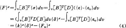 因此,可把粘性应变{εv}当作初应变,{Fv}e表示粘性初应变产生的单元节点附加荷载,即