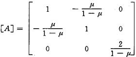 式中[A]为泊松比矩阵,对于平面应变问题为: