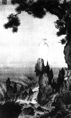 | 释义 | 嵩献英芝图 【作品赏析】: 《嵩献英芝图》轴画于雍正二年(1724),是意大利画家郎世宁来中国后的早期作品,带有更多的欧洲风味。 画面正中是一只立于石上的白鹰,右边是一棵弯曲的老松树,下部为急湍的流水,松树下石缝间长有灵芝草。画家以松、鹰、灵芝等物来歌颂皇帝,从题材内容看完全是中国传统的;而在具体描绘上,则注重光线明暗和物象立体感的表现。 光源自左上方照来,受光面明亮,背光面处于暗部,对比很强烈,尤其是白鹰下面的石块和松树,凸凹明显,树皮斑驳,树叶掩映,比较充分地发挥了西洋绘画的长处。郎世宁在宫中不光自己作画,而且还向中国的宫廷画家传授欧洲绘画的技法,所以使相当一部分的清朝宫廷绘画带有前所未有的新的时代特征,即中西合璧的画风。 画上有“臣郎世宁恭画”款一行,这是清朝宫廷画家署款的格式,姓名前冠以“臣”字,说明这是画家在宫廷里专门为皇帝而画的。 。【作者介绍】: 郎世宁(1688-1766),意大利米兰人,于康熙五十四年(1715)以欧洲耶稣会的传教士身分来到中国,先至澳门,然后北上京师,按照欧洲传教士来到中国后取汉名的习惯,遂名郎世宁。 他约于康熙末期进入宫廷供职,目前见到最早的作品画于雍正元年(1723)。郎世宁经历康、雍、乾二代,在宫中创作了大量人物肖像、历史、花鸟走兽画,得到皇帝的欣赏。其中尤以当时重大事件为题的巨幅历史画,具有重要价值。他还是圆明园西洋楼建筑的设计者之。 乾隆三十年郎世宁卒于北京,乾隆皇帝特赐侍郎衔,赏银三百两为他料理丧事,遗体葬在北京阜成门外的外国传教士墓地内。。