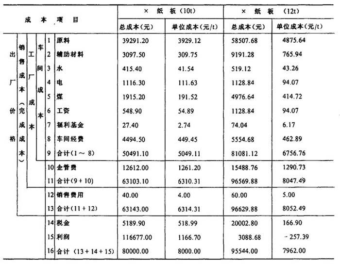 | 释义 | 工业产品成本计算实例 [说明]工业产品成本计算的方法,即以产品品种为成本计算对象归集生产费用来计算产品成本。 [例]某纸板厂生产的两种纸板,按上述方法计算出各项生产费用(见表5-2-2),则该两种产品本月的成本见表5-2-2。 表5-2-2 工业产品成本计算表 ×年×月