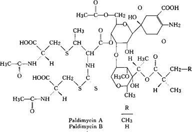 Antibiotic produced by Styeptomyces organism,a mixture of Paldimycin A and Paldimycin B,in approximately a 1∶1 natio.