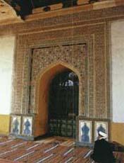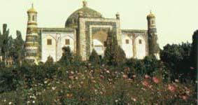 艾提尕清真寺 位于喀什市解放路,艾提尕为阿拉伯语与波斯语复合词,意为节日礼拜场所。是全疆伊斯兰教活动中心。传说始建于回历846年(公元1426年)。大寺正门浅绿,布满精细刻花,门楼高12米,边廊环以穹形壁龛。门墙左右为圆柱形砌尖塔,高18米。全寺由礼拜寺、教堂两部分组成。礼拜寺面积2600平方米,寺顶由158根凸花雕柱承重,柱头造型多变。天棚绘彩色花卉,形成有特色的藻井。清真寺既是宗教活动的中心,又为古尔邦节、肉孜节群众游乐歌舞的主要场所。 阿帕霍加墓 又名“香妃墓”。它坐落在喀什市东郊5公里处的浩罕村,是一座典型的伊斯兰教式的古建筑群。陵墓始建于1640年前后。据说墓内葬有同一家族的五代72人,因其中葬有明末清初喀什著名的伊斯兰教“依禅派”大师阿帕霍加而得名。陵墓由门楼、大小礼拜寺、教堂和主墓室5部分组成。正门门楼精美华丽,两侧有高大的砖砌圆柱和门墙,表面镶著蓝底白花琉璃砖。与门楼西墙紧连的是一座小清真寺,前有彩绘天棚覆顶的高台,后有祈祷室。陵园内西面是一座大清真寺。传说清乾隆皇帝的宠妃,名叫伊帕尔汗的“香妃”,逝后遗体被运回喀什,葬于此。陵堂内还摆放一部当年运灵柩的马车。伊帕尔汗身上总有一股浓郁的沙枣花香,得了“香妃”美名,因此阿帕霍加墓也叫“香妃墓”。但据史料记载及今人考证,乾隆皇帝所纳的香妃在宫中生活28年后,52岁病逝,葬于河北清东陵,这里并不是真正的“香妃墓”。