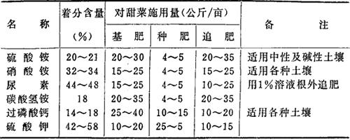 表1-9 常用化肥在甜菜上的施用方法