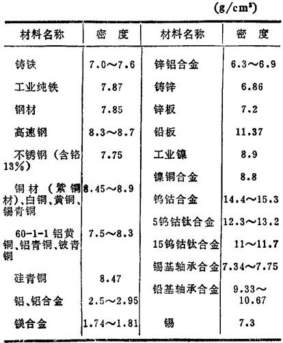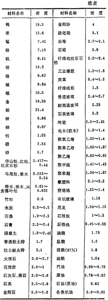 表1.10-10 常用材料的密度 t/m3