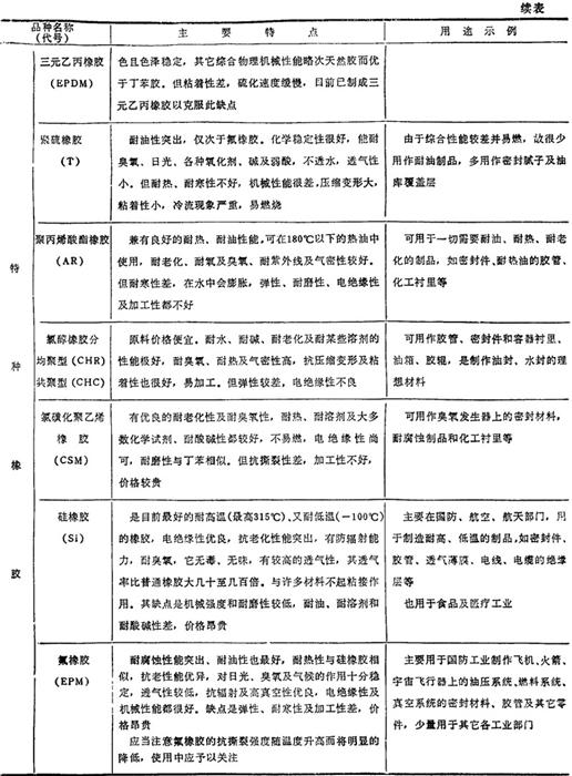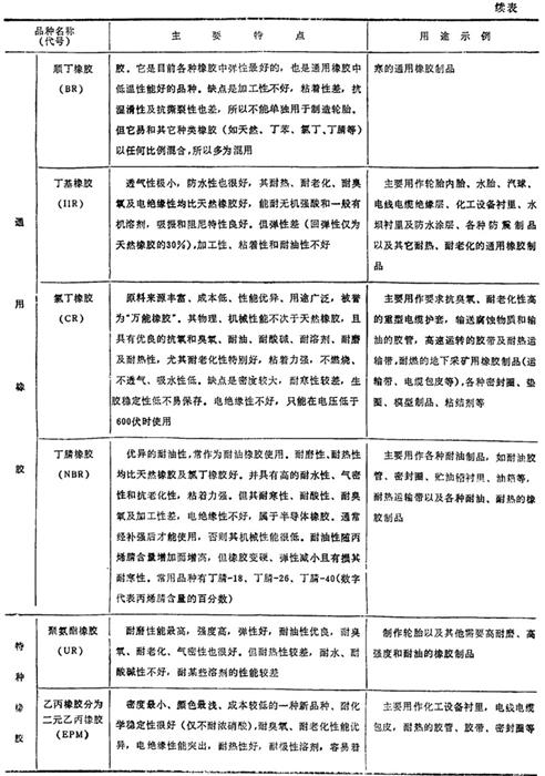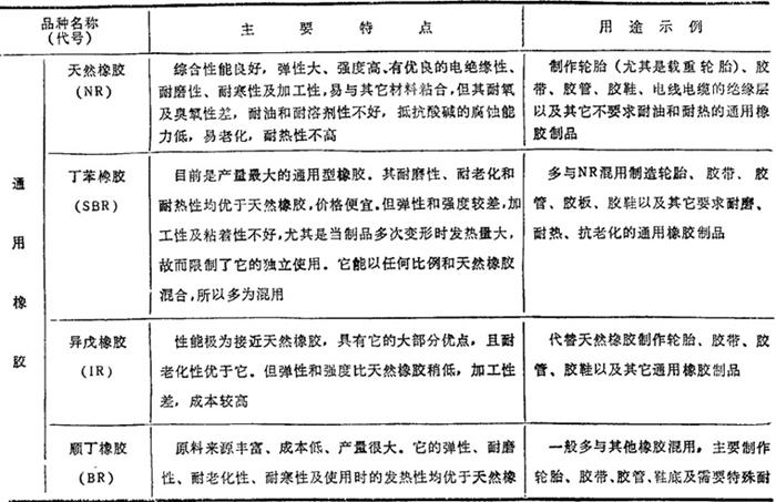 表2.2-13 常用橡胶的品种、特点和用途