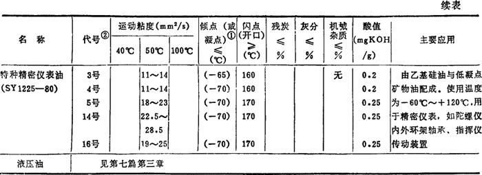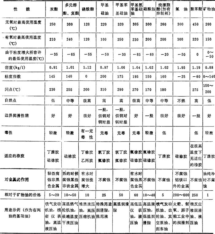 注:合成油的种类很多,其他如合成烃润滑油以及三嗪、乙基硅油等。 表4.11-7 常用滑滑油的性质和应用