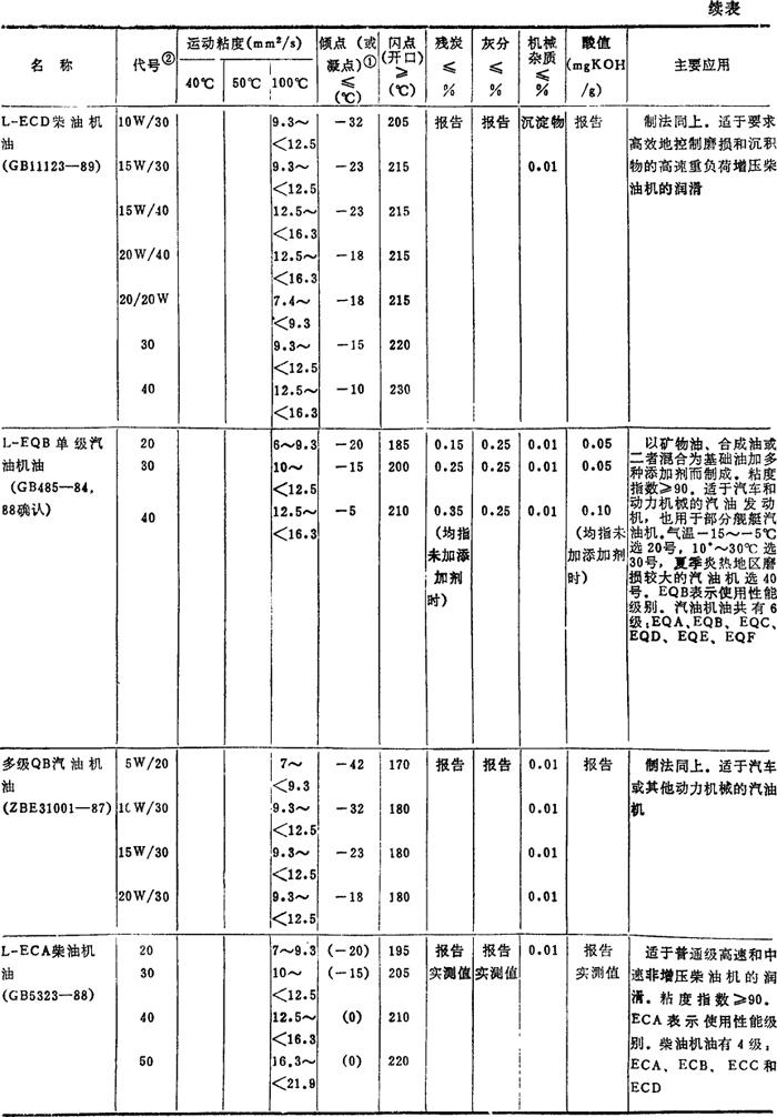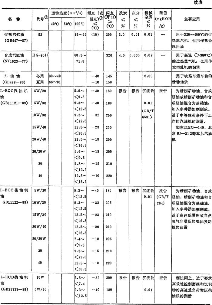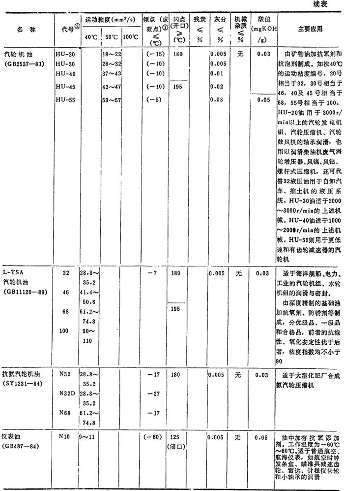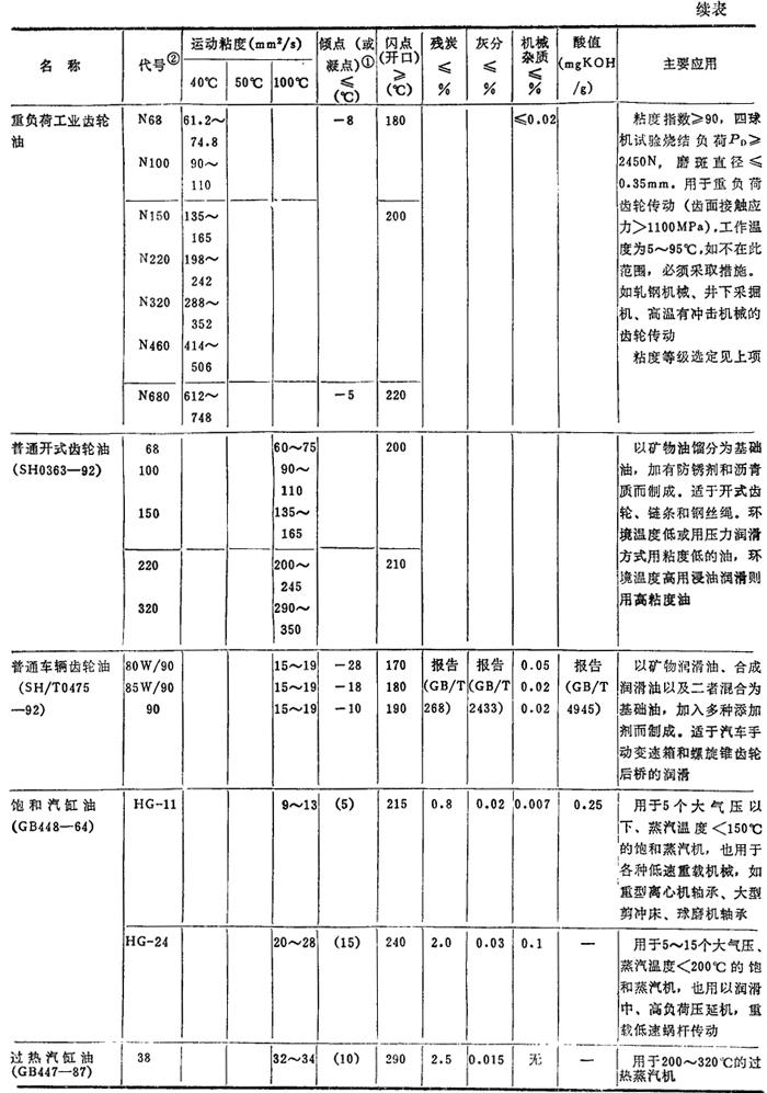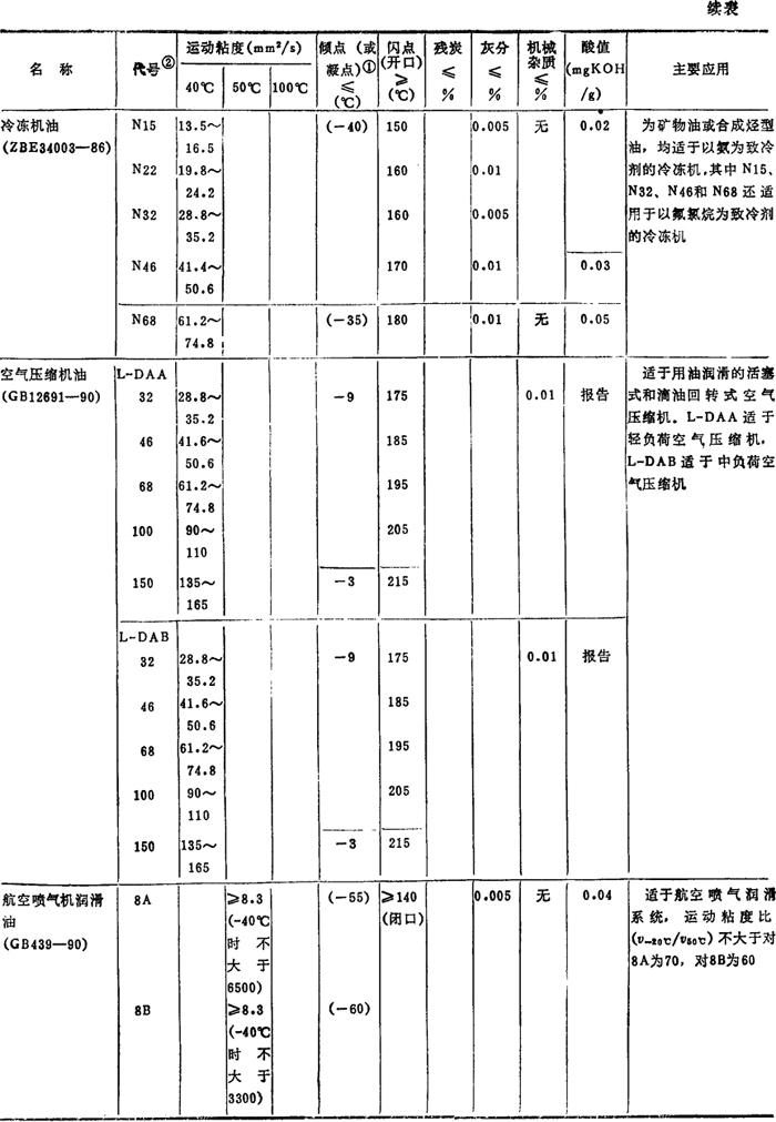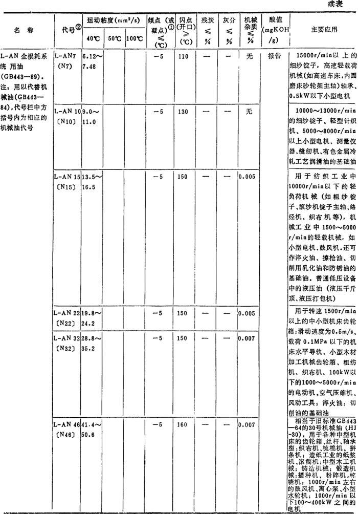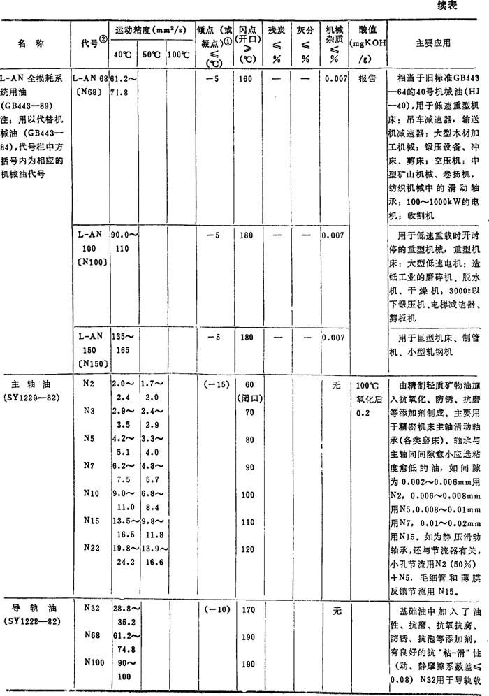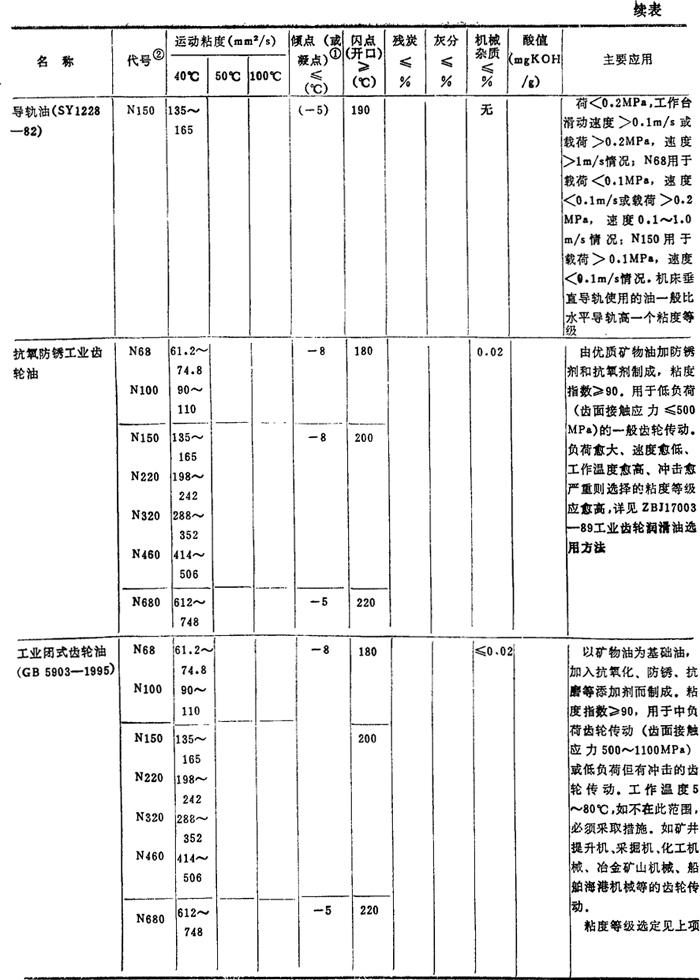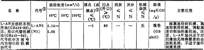 注: ❷ 油的代号加前缀N,是为了与旧牌号相区别的过渡措施,表示后面的数值是40℃下该油品的运动粘度的平均值。GB3141-82规定,前缀N只用到1990年底为止,过期自动取消。 |