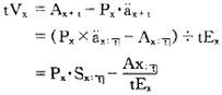 tVx——终身寿险第t年的准备金。