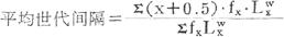 式中:(x+0.5)为x岁组妇女的平均年龄,fx为x岁组的妇女生育率, 如平均世代间隔为20年,就是说20年可繁殖一代人。 |