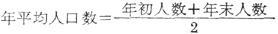 在实际工作中,要掌握人口数的每日资料是很困难的,通常根据时期(月、季、年)初的时点人口数,计算平均人口数。如计算年平均人口数的公式为: