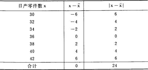式中:A.D.代表平均差, 例如,某生产班组日产零件资料如下表: