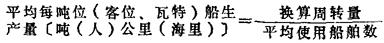 船舶在报告期内平均每吨位(客位、瓦特)完成的换算周转量。简称吨位(客位、瓦特)船生产量。其计算公式为:  平均每吨位(客位、瓦特)船生产量反映水运企业在整个报告期内船舶吨位(客位、瓦特)的平均使用效率,是水运企业运输船舶工作效率的综合性指标。它等于下列五个指标的连乘积: 平均每吨位(客位、瓦特)船生率量=每船通航天数×营运率×航行率×平均航行速度×载重(客)量利用率(或平均每瓦特拖带量) 平均每吨位(客位、瓦特)船生产量也是船舶工作营运指标体系中的综合指标,它比平均每营运吨位(客位、瓦特)天生产量更能说明水运企业运输船舶在一个报告期内的生产效率。 |