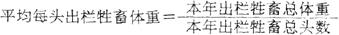 | 释义 | 平均每头出栏牲畜体重 指出栏牲畜总体重除以出栏牲畜总头数之商。 反映出栏牲畜质量的指标。计算公式为: